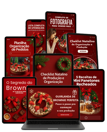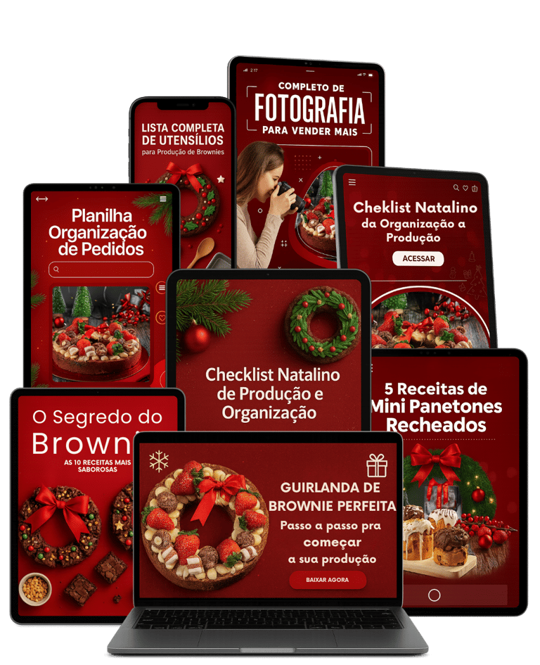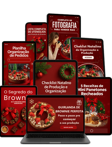 Um guia prático, que te ensina, passo a passo, como produzir, montar e vender Guirlandas de Brownie no Natal. Um produto que que se vende sozinho pela beleza e sabor que entrega, as versões médio e mini vendem tanto para ceia de natal como para presentear e vão transformar a temporada natalina em lucro real.