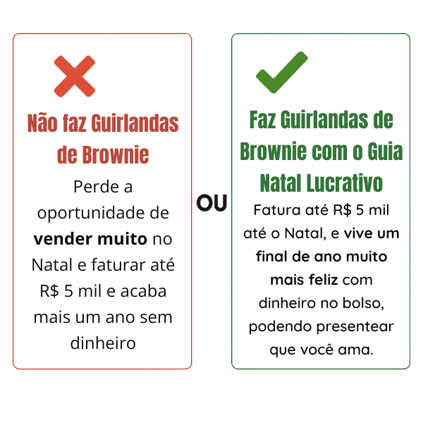 Você já sabe qual a melhor opção se não quer terminar o ano como os anteriores, clique no botão e comece a sua produção Guirlandas de Brownie hoje mesmo!